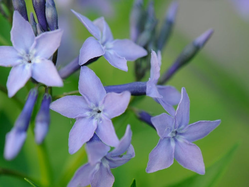 A close-up captures delicate lavender-hued blossoms, their five petals unfurling gently amidst soft green foliage. The shallow depth of field creates a dreamy, serene backdrop, highlighting the intricate beauty of each flower. It’s a quiet moment, inviting contemplation of nature's subtle artistry.