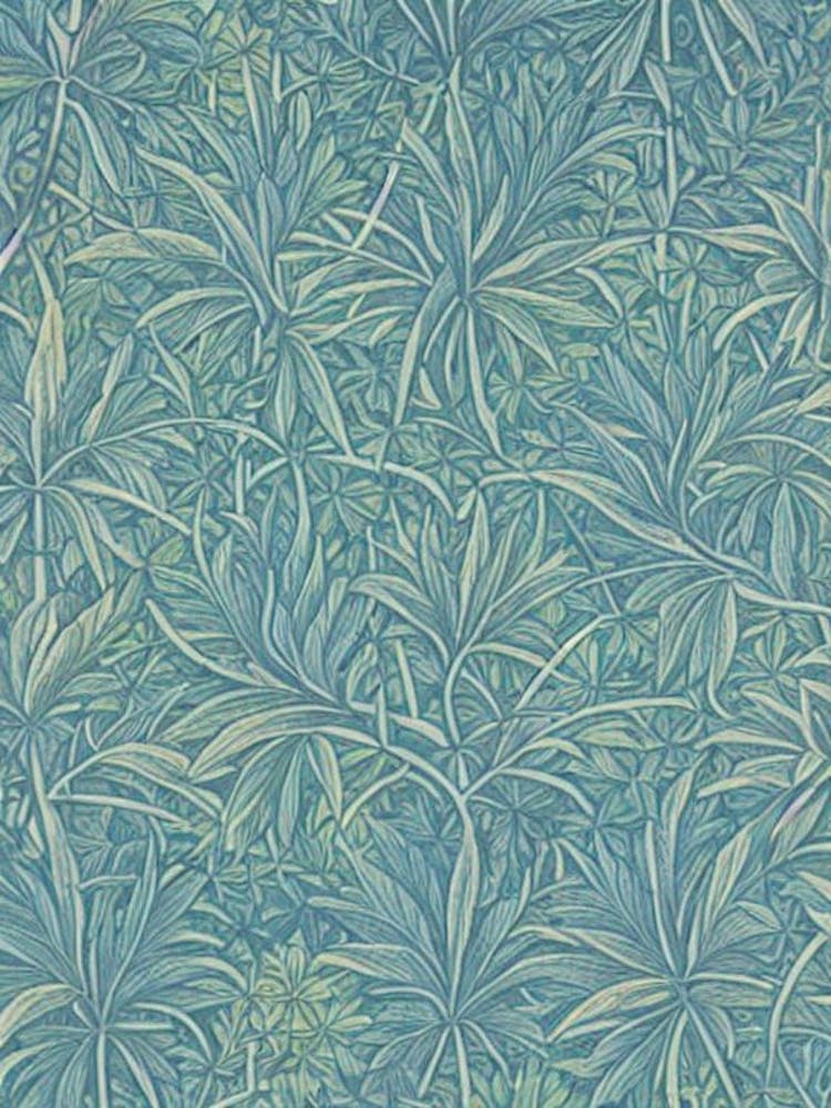 A dense tapestry of Montezuma Cypress foliage unfolds in a vintage botanical pattern, its leaves rendered in intricate detail across shades of teal and blue-green. The artwork evokes a sense of timeless natural history, a serene and complex beauty that brings the quiet dignity of the forest indoors.