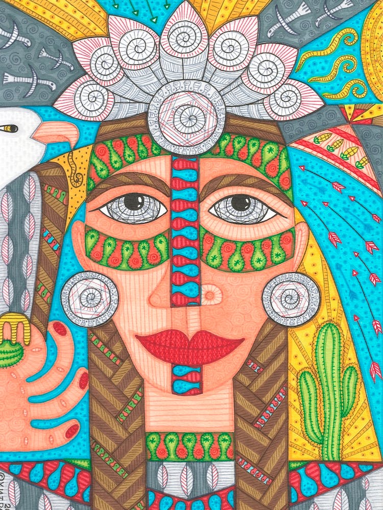 Native American Girl With Bald Eagle