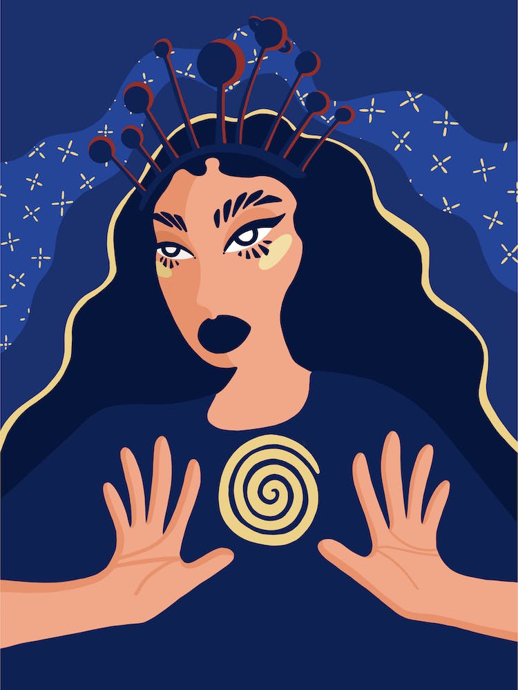 A stylized solar system unfurls against a deep indigo background, planets orbiting in intricate, golden pathways. The illustration blends scientific curiosity with an antique, celestial aesthetic, inviting contemplation of the cosmos. Its rich palette and detailed composition make it a timeless piece for stargazers and dreamers alike.