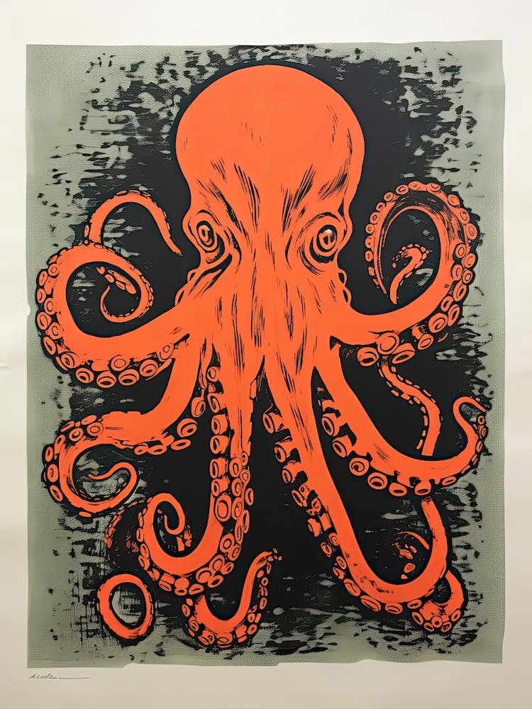 Octopus, Woodblock Animal Drawing 1 -